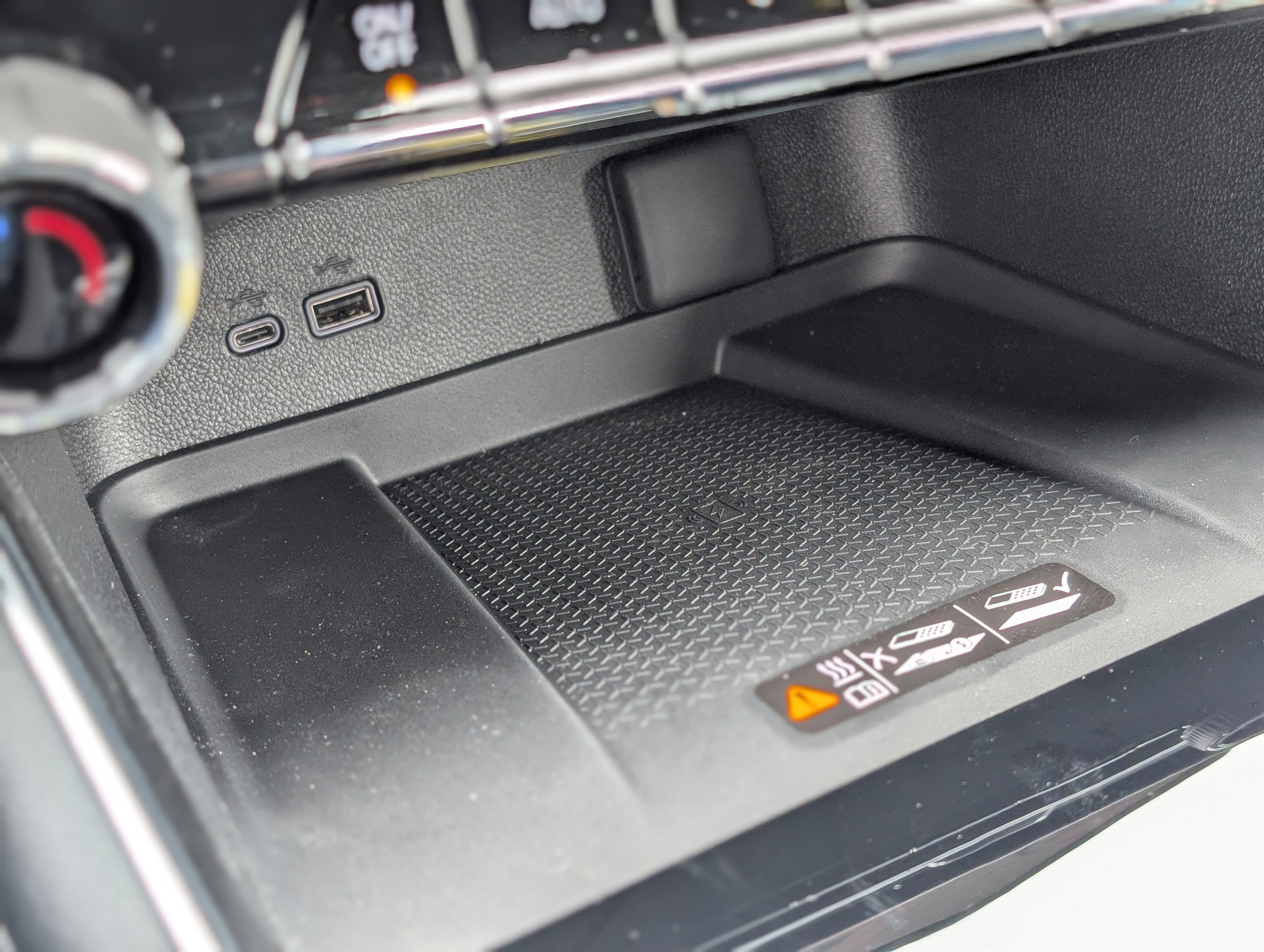 - USB ports, 2, one type A and one type-C data/charge, located in the front area of the center console