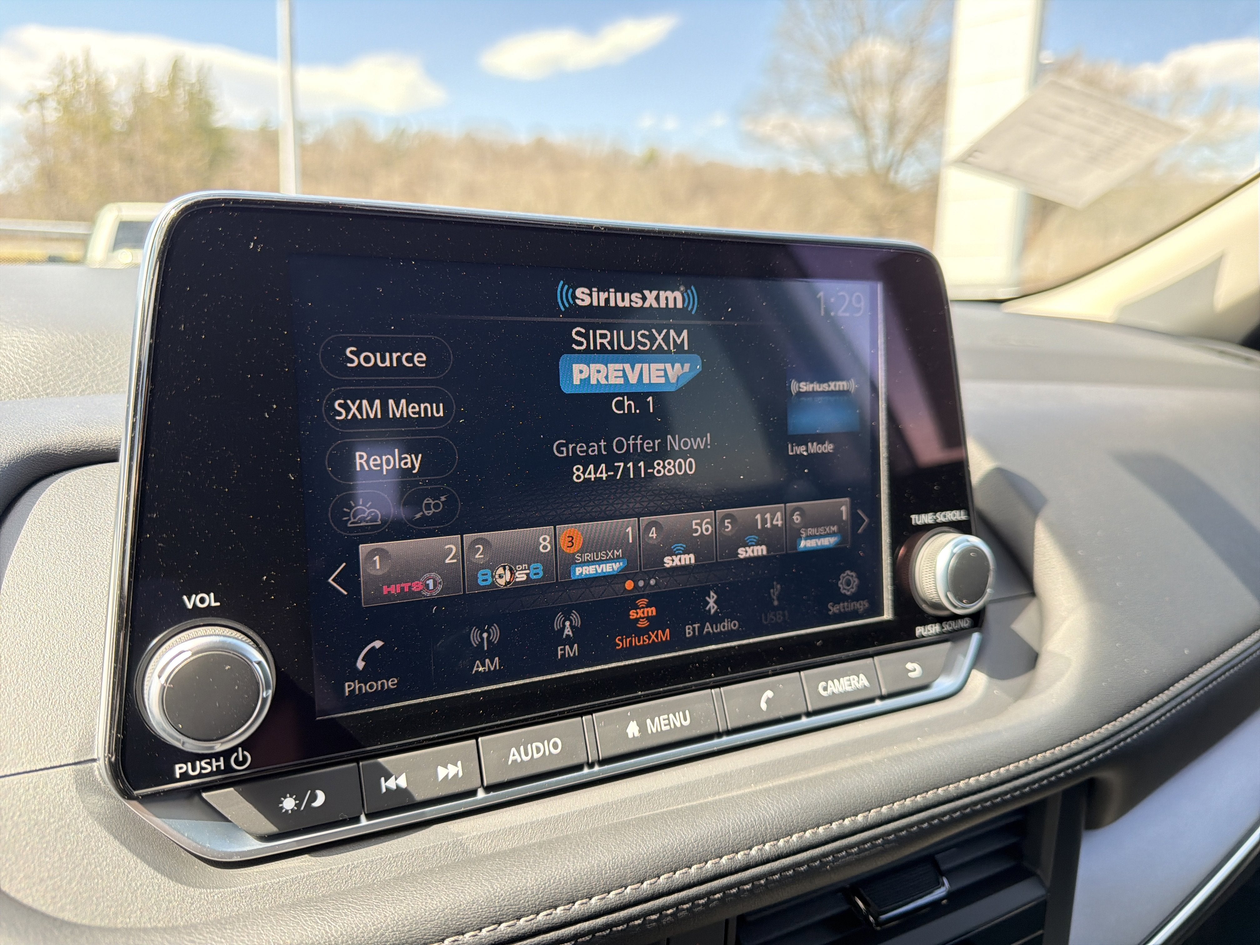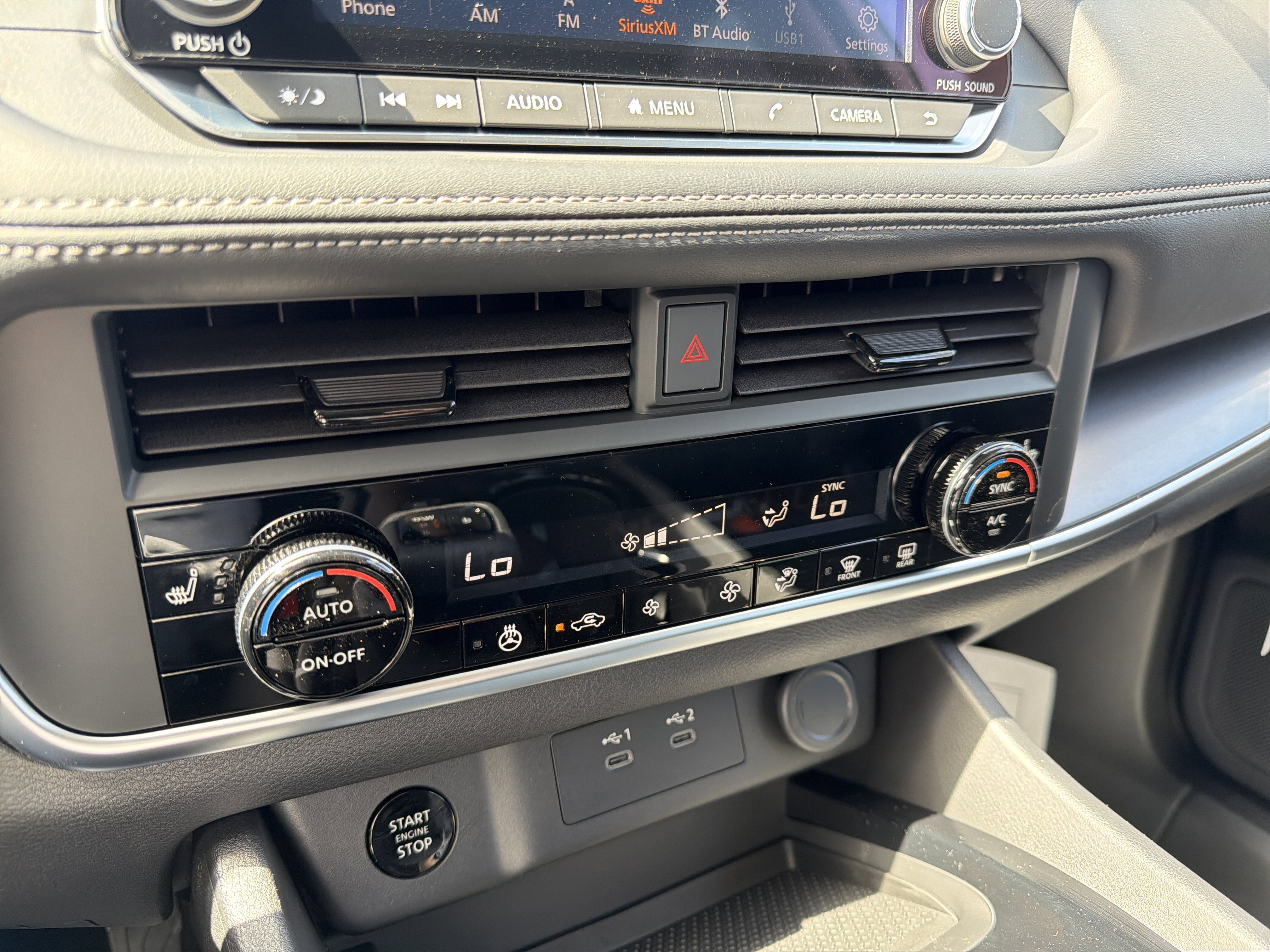 - Radio: AM/FM NissanConnect -inc: 6 speakers plus 2 tweeters, Apple CarPlay, Android Auto, 8" color touch screen display, Bluetooth®, 2 front USB type-C, Wi-Fi hotspot and NissanConnect Services powered by SiriusXM