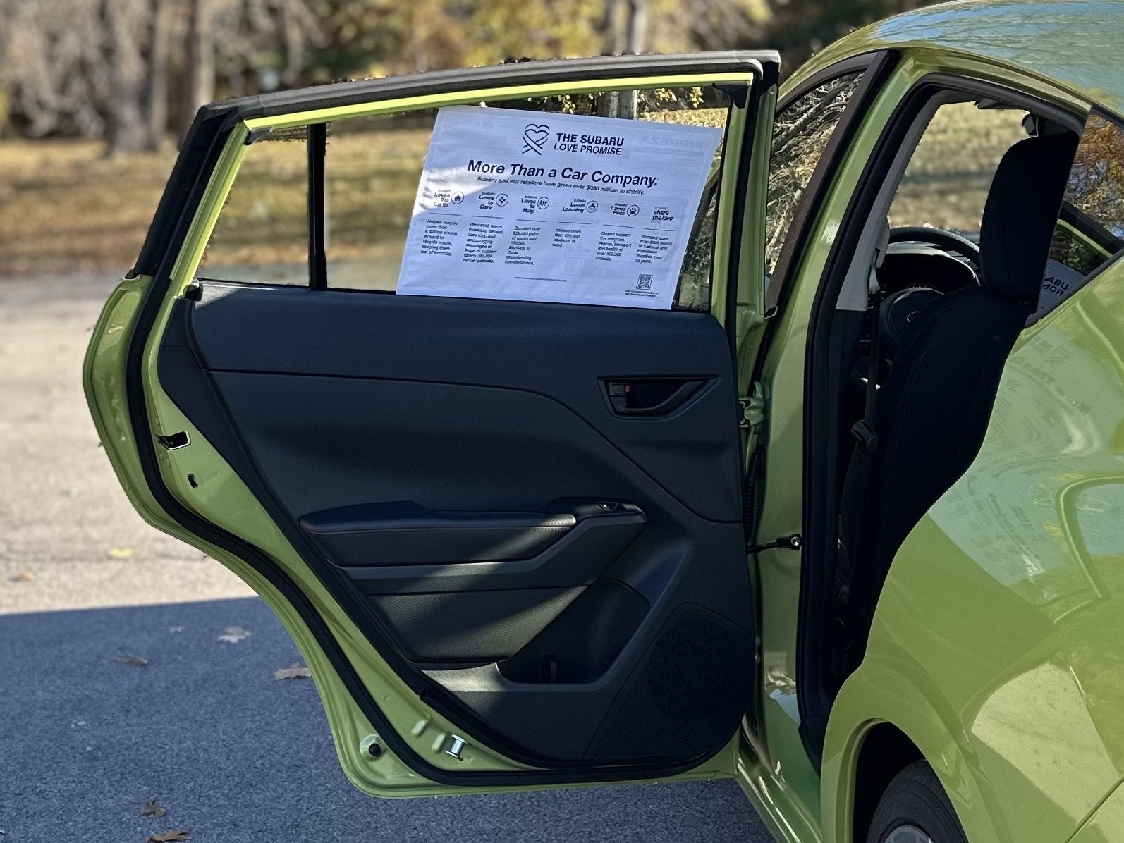 - Radio: Subaru 11.6" Multimedia Plus System -inc: valet mode, AM/FM stereo, HD Radio, multi-touch gesture high resolution display screen, voice activated controls, Bluetooth® audio streaming and hands-free phone connectivity, Bluetooth® hands-free SMS text messaging connectivity, iPod control capability, smartphone integration: wired and wireless Android Auto w/full screen view, wireless Apple CarPlay w/full screen view and wireless connection, USB and Over The Air (OTA) audio system update, audio system and Bluetooth® steering wheel control switches, 6 speakers (2 dash panel tweeter, 2 front door, 2 rear door), illuminated 3.5mm auxiliary input jack, illuminated USB A and C input charge ports, roof mounted satellite and connected services, roof mounted black antenna, connected services operation indicator, SOS emergency assistance (red button) and ehanced roadside assistance (blue i-button)