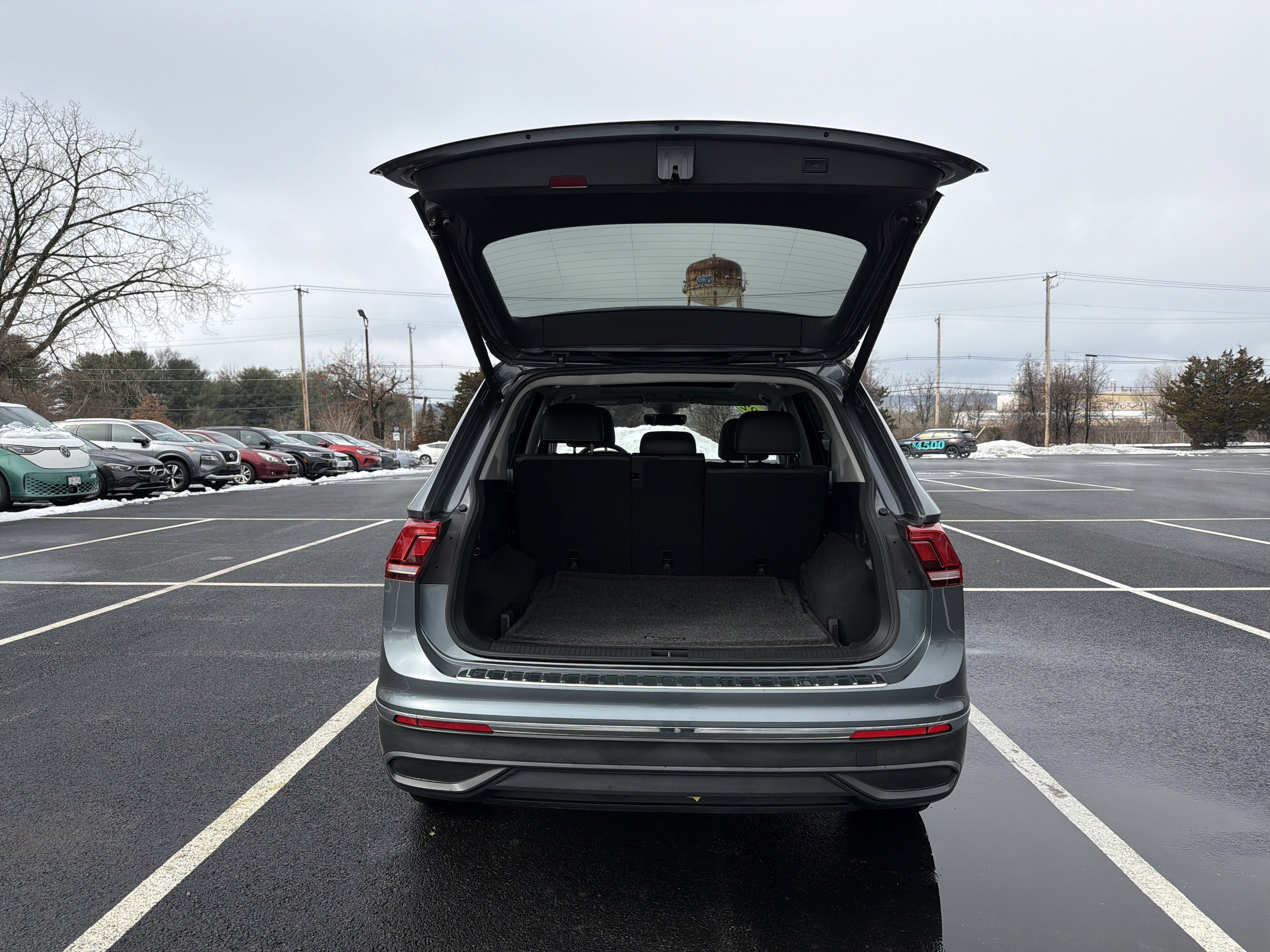 Romeo Volkswagen is proud to present this 2022 Volkswagen Tiguan with 3.33 Axle Ratio, 4-Wheel Disc Brakes, 4-Wheel Independent Suspension, 6 Speakers, ABS brakes, Air Conditioning, Alloy wheels, AM/FM radio: SiriusXM with 360L, Auto-dimming Rear-View mirror, Automatic temperature control, Brake assist, Bumpers: body-color, Compass, Delay-off headlights, Driver door bin, Driver vanity mirror, Dual front impact airbags, Dual front side impact airbags, Electronic Stability Control, Emergency communication system: Car-Net, Exterior Parking Camera Rear, Four wheel independent suspension, Front anti-roll bar, Front Bucket Seats, Front Center Armrest, Front dual zone A/C, Front reading lights, Fully automatic headlights, Heated door mirrors, Heated Front Comfort Seats, Heated front seats, Illuminated entry, Leather Shift Knob, Low tire pressure warning, Occupant sensing airbag, Outside temperature display, Overhead airbag, Overhead console, Panic alarm, Passenger door bin, Passenger vanity mirror, Perforated V-Tex Leatherette Seating Surfaces, Power door mirrors, Power driver seat, Power Liftgate, Power steering, Power windows, Radio data system, Radio: MIB3 Composition Media AM/FM/HD, Rain sensing wipers, Rear anti-roll bar, Rear reading lights, Rear seat center armrest, Rear window defroster, Rear window wiper, Remote keyless entry, Roof rack: rails only, Security system, Speed control, Speed-sensing steering, Split folding rear seat, Spoiler, Steering wheel mounted audio controls, Tachometer, Telescoping steering wheel, Tilt steering wheel, Traction control, Trip computer, Turn signal indicator mirrors, Variably intermittent wipers, and Wheels: 18 Dark Graphite 10-Spoke Alloy.