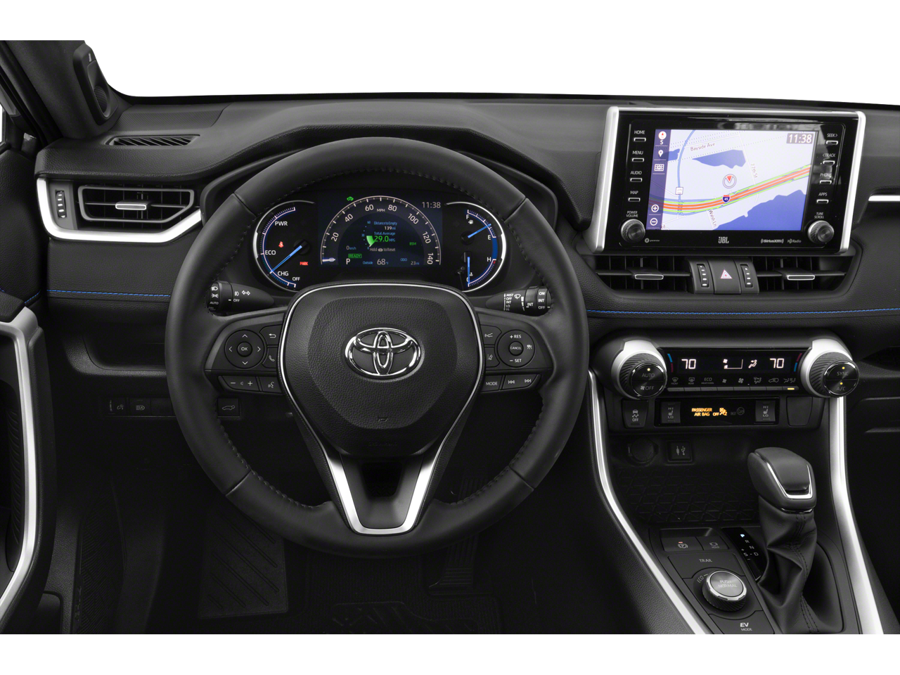 2019 Toyota RAV4 Hybrid XSE 2.5L 4-Cylinder. Romeo Toyota proudly presents this 2019 Toyota RAV4 Hybrid with 2.5L 4-Cylinder, 4-Wheel Disc Brakes, 6 Speakers, ABS brakes, Air Conditioning, Alloy wheels, AM/FM radio: SiriusXM, Apple CarPlay, Auto High-beam Headlights, Auto-dimming Rear-View mirror, Automatic temperature control, Axle Ratio: TBD, Brake assist, Bumpers: body-color, Delay-off headlights, Driver door bin, Driver vanity mirror, Dual front impact airbags, Dual front side impact airbags, Electronic Stability Control, Emergency communication system: Safety Connect, Four wheel independent suspension, Front anti-roll bar, Front Bucket Seats, Front Center Armrest, Front dual zone A/C, Front fog lights, Front reading lights, Fully automatic headlights, Garage door transmitter: HomeLink, Heated door mirrors, Heated Front Seats, Heated front seats, Illuminated entry, Knee airbag, Leather Shift Knob, Low tire pressure warning, Occupant sensing airbag, Outside temperature display, Overhead airbag, Overhead console, Panic alarm, Passenger door bin, Passenger vanity mirror, Power door mirrors, Power driver seat, Power Liftgate, Power moonroof, Power steering, Power windows, Radio data system, Radio: Entune 3.0 Audio Plus, Rear anti-roll bar, Rear seat center armrest, Rear window defroster, Rear window wiper, Remote keyless entry, Roof rack: rails only, Security system, SofTex Seat Trim (EC), Speed control, Speed-sensing steering, Split folding rear seat, Spoiler, Steering wheel mounted audio controls, Telescoping steering wheel, Tilt steering wheel, Traction control, Trip computer, Turn signal indicator mirrors, Variably intermittent wipers, and Wheels: 18 x 7.0J Black-Painted Aluminum Alloy.