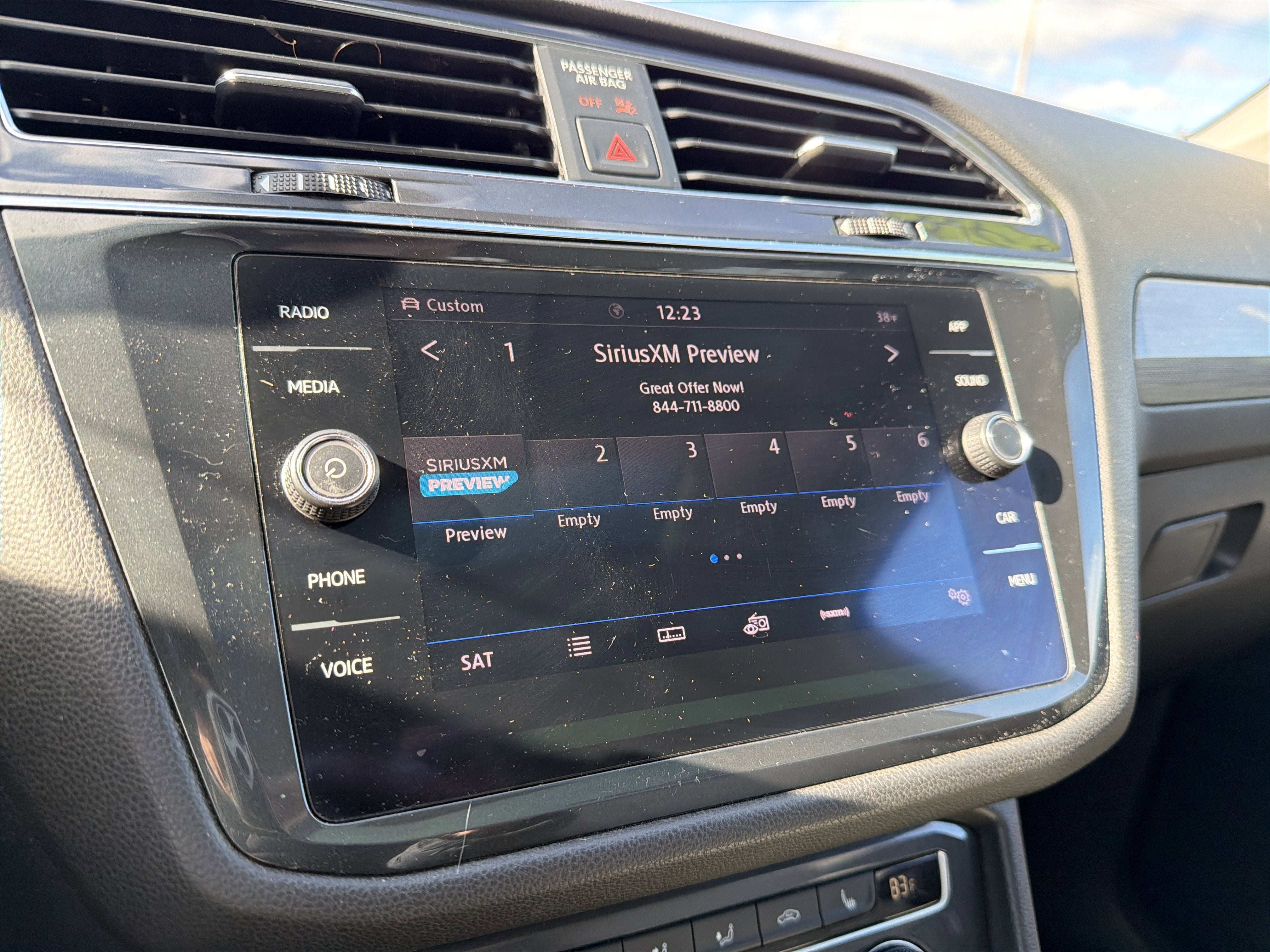 - Radio: Composition Media AM/FM/HD -inc: 8" touchscreen, dual USB input, voice control, 6-speaker sound system, VW App-Connect smartphone integration and interface w/Apple CarPlay, Android Auto and MirrorLink, capability for in-vehicle 4G LTE enabled Wi-Fi (cellular data plan required; includes limited trial), capability for VW Car-Net services (capabilities for certain services vary; requires enrollment or subscription), Bluetooth® connectivity (for compatible devices), SiriusXM satellite radio w/limited-time trial subscription and USB charging-only port facing 2nd row seat