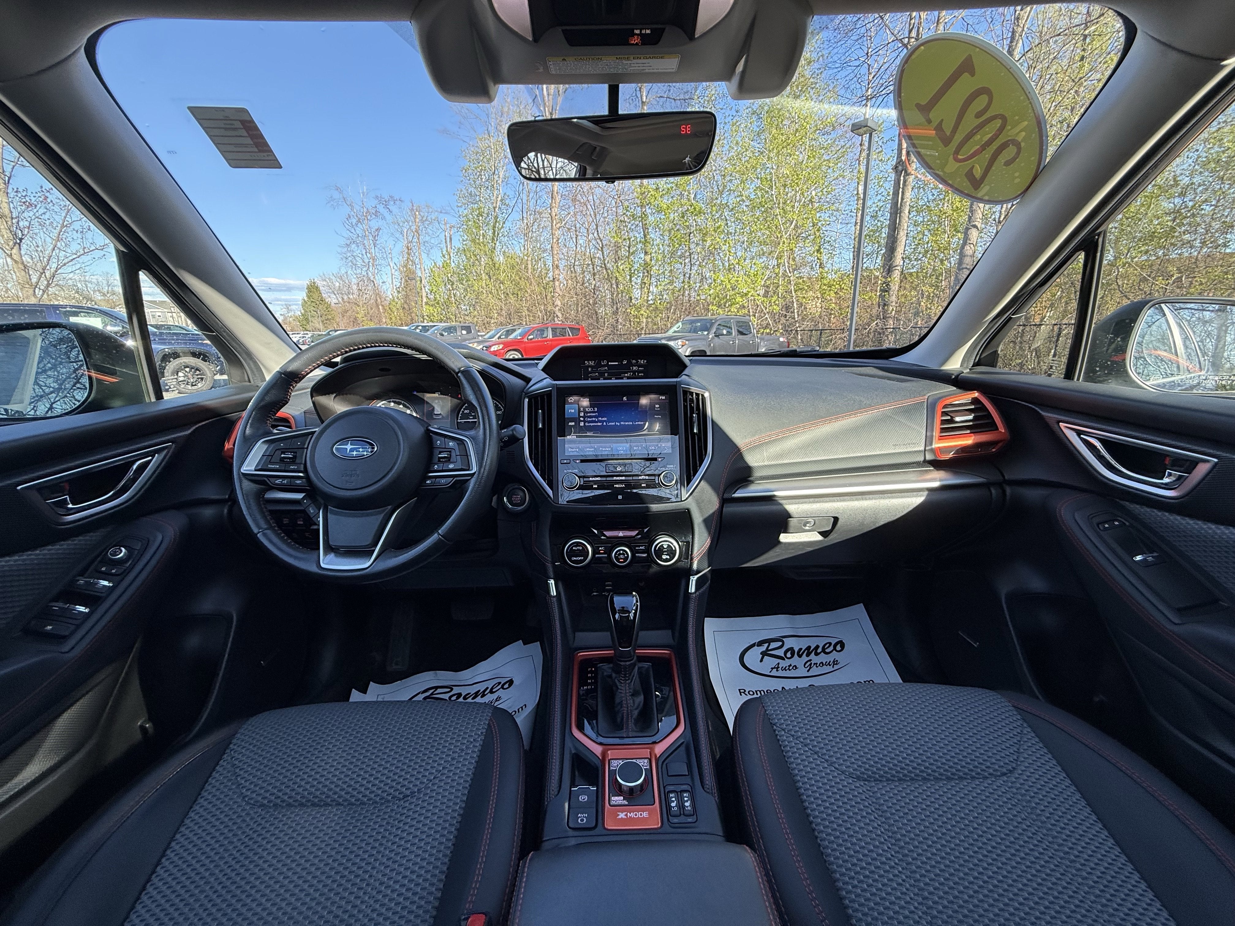 Recent Arrival! 2021 Subaru Forester Sport Romeo Toyota proudly presents this 2021 Subaru Forester with Audio System & Reverse Auto Brake & Power Rr Gate (harman kardon 576W Amp & Speaker System, Power Rear Gate w/Automatic Close & Height Memory, Radio: Subaru Starlink 8.0 Multimedia Plus System, and Reverse Automatic Braking System (RAB)), 3.70 Axle Ratio, 4-Wheel Disc Brakes, 6 Speakers, ABS brakes, Air Conditioning, All-Weather Floor Liners, Alloy wheels, AM/FM radio: SiriusXM, Auto High-beam Headlights, Auto-Dimming Mirror w/Compass, Automatic temperature control, Brake assist, Bumpers: body-color, CD player, Dark Blue Pearl Body Side Molding, Driver door bin, Driver vanity mirror, Dual front impact airbags, Dual front side impact airbags, Electronic Stability Control, Emergency communication system: STARLINK Safety and Security (Subscription Required), Exterior Parking Camera Rear, Four wheel independent suspension, Front anti-roll bar, Front Bucket Seats, Front Center Armrest, Front fog lights, Front reading lights, Fully automatic headlights, Heated door mirrors, Heated Front Bucket Seats, Heated front seats, Illuminated entry, Knee airbag, Leather Shift Knob, Low tire pressure warning, Occupant sensing airbag, Outside temperature display, Overhead airbag, Overhead console, Paddle-Shift Control Switches, Panic alarm, Passenger door bin, Passenger vanity mirror, Power door mirrors, Power driver seat, Power moonroof: Panoramic, Power steering, Power windows, Radio data system, Radio: Subaru Starlink 6.5 Multimedia Plus System, Rear anti-roll bar, Rear Bumper Cover, Rear seat center armrest, Rear Seatback Protector, Rear window defroster, Rear window wiper, Remote keyless entry, Roof rack: rails only, Security system, Speed control, Speed-sensing steering, Split folding rear seat, Spoiler, Sport Cloth Upholstery, STARLINK/Apple CarPlay/Android Auto, Steering wheel mounted audio controls, Tachometer, Telescoping steering wheel, Tilt steering wheel, Traction control, Trip computer, Turn signal indicator mirrors, Variably intermittent wipers, and Wheels: 18 x 7.0J Black Finish Aluminum Alloy.
