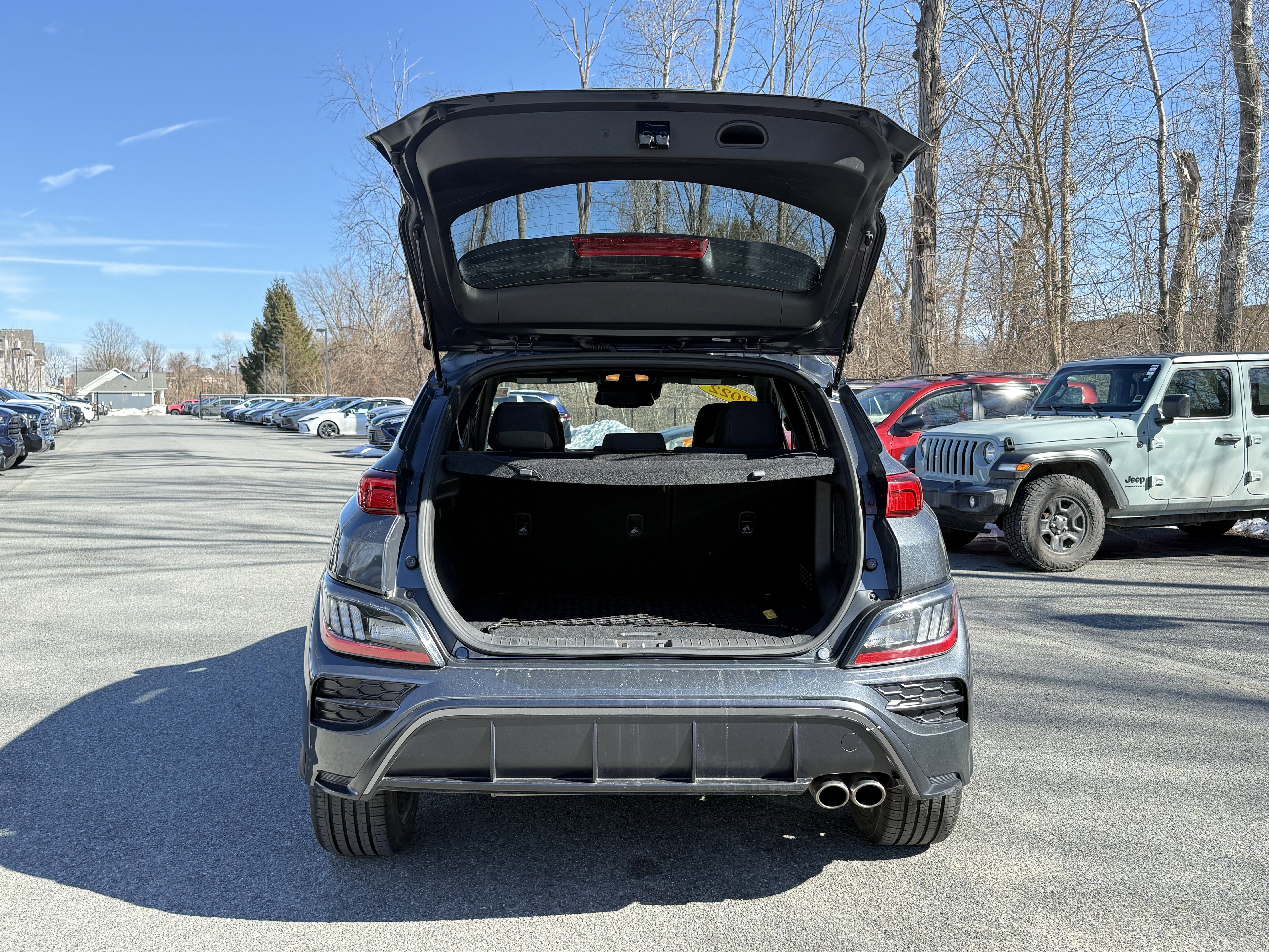 Recent Arrival! 2022 Hyundai Kona N Line New Price! Romeo Toyota proudly presents this 2022 Hyundai Kona with Tech Package (Electric Parking Brake, High Beam Assist, Hyundai Highway Driving Assist 1, LED Headlights, LED Taillights, Option Group 03, Power Sunroof, Radio: Harman Kardon Premium Audio System, and Smart Cruise Control w/Stop & Go), 3.174 Axle Ratio, 4-Wheel Disc Brakes, 6 Speakers, ABS brakes, Air Conditioning, Alloy wheels, AM/FM radio: SiriusXM, Apple CarPlay & Android Auto, Automatic temperature control, Brake assist, Bumpers: body-color, Cargo Net, Carpeted Floor Mats, Delay-off headlights, Driver door bin, Driver vanity mirror, Dual front impact airbags, Dual front side impact airbags, Electronic Stability Control, Emergency communication system: Blue Link Connected Car Service (3-year complimentary subscription), Exterior Parking Camera Rear, Four wheel independent suspension, Front anti-roll bar, Front Bucket Seats, Front Center Armrest, Front reading lights, Fully automatic headlights, Heated door mirrors, Heated Front Bucket Seats, Heated front seats, Illuminated entry, Leather Shift Knob, Leather steering wheel, Low tire pressure warning, Occupant sensing airbag, Overhead airbag, Overhead console, Panic alarm, Passenger door bin, Passenger vanity mirror, Power door mirrors, Power driver seat, Power steering, Power windows, Radio: AM/FM/HD Radio/SiriusXM Audio System, Rear anti-roll bar, Rear Bumper Applique, Rear seat center armrest, Rear window defroster, Rear window wiper, Remote keyless entry, Roof Rack Cross Rails, Security system, Speed control, Speed-sensing steering, Split folding rear seat, Spoiler, Sport Cloth Seat Trim, Steering wheel mounted audio controls, Tachometer, Telescoping steering wheel, Tilt steering wheel, Traction control, Trip computer, Turn signal indicator mirrors, Variably intermittent wipers, and Wheels: 18 x 7.5J Alloy.