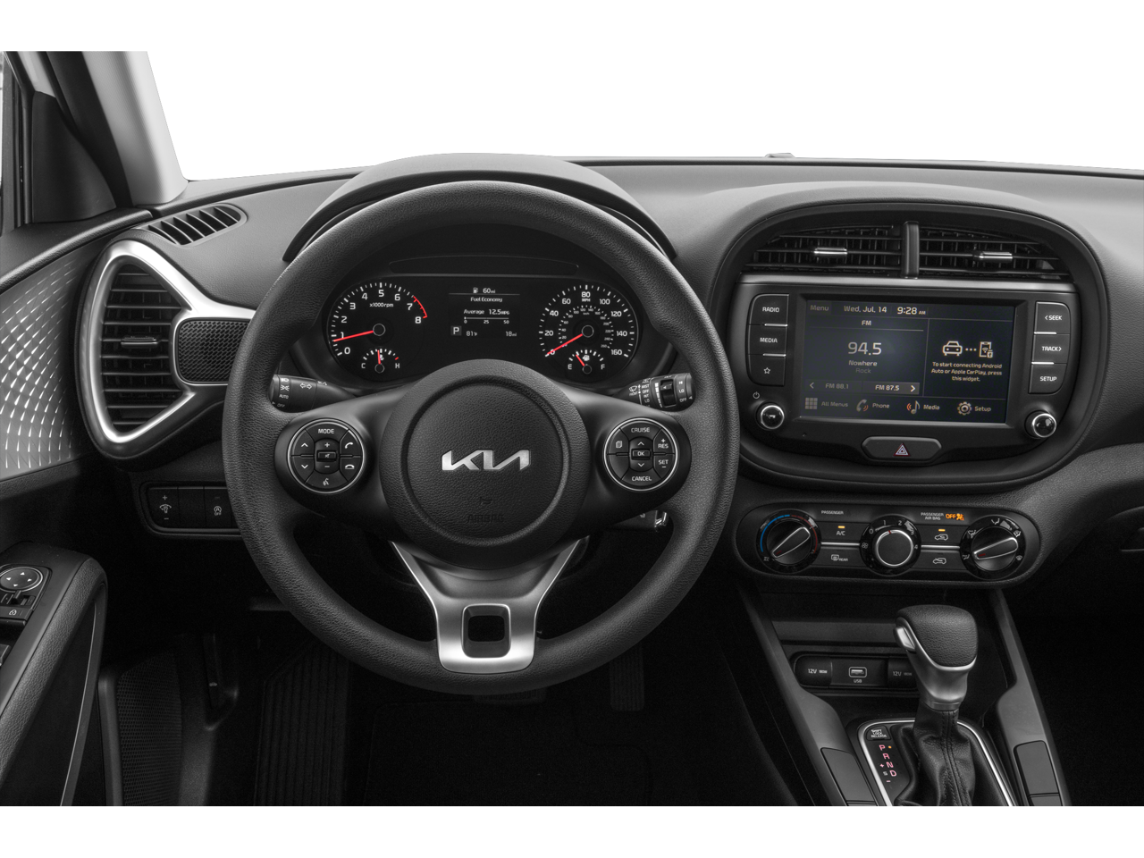 Romeo Kia proudly presents this 2022 Kia Soul with Technology Package (16 x 6.5 Alloy Wheels, Blind Spot Collision Warning, Driver Attention Warning, Forward Collision Avoidance Assist, Lane Change Assist, Lane Keeping Assist, and Rear Cross-Traffic Collision Avoidance Assist), 16 x 6.5 Steel Wheels, 4-Wheel Disc Brakes, 6 Speakers, ABS brakes, Air Conditioning, AM/FM radio, Apple CarPlay & Android Auto, Brake assist, Bumpers: body-color, Carpeted Floor Mats, Delay-off headlights, Driver door bin, Driver vanity mirror, Dual front impact airbags, Dual front side impact airbags, Electronic Stability Control, Exterior Parking Camera Rear, Front anti-roll bar, Front Bucket Seats, Front Center Armrest, Front reading lights, Front wheel independent suspension, Fully automatic headlights, Illuminated entry, Low tire pressure warning, Occupant sensing airbag, Outside temperature display, Overhead airbag, Overhead console, Panic alarm, Passenger door bin, Passenger vanity mirror, Power door mirrors, Power steering, Power windows, Radio: AM/FM/MP3 Audio System, Rear Bumper Applique, Rear window defroster, Rear window wiper, Remote keyless entry, Speed control, Speed-sensing steering, Split folding rear seat, Steering wheel mounted audio controls, Tachometer, Telescoping steering wheel, Tilt steering wheel, Traction control, Trip computer, Variably intermittent wipers, and Woven & Tricot Cloth Seat Trim.