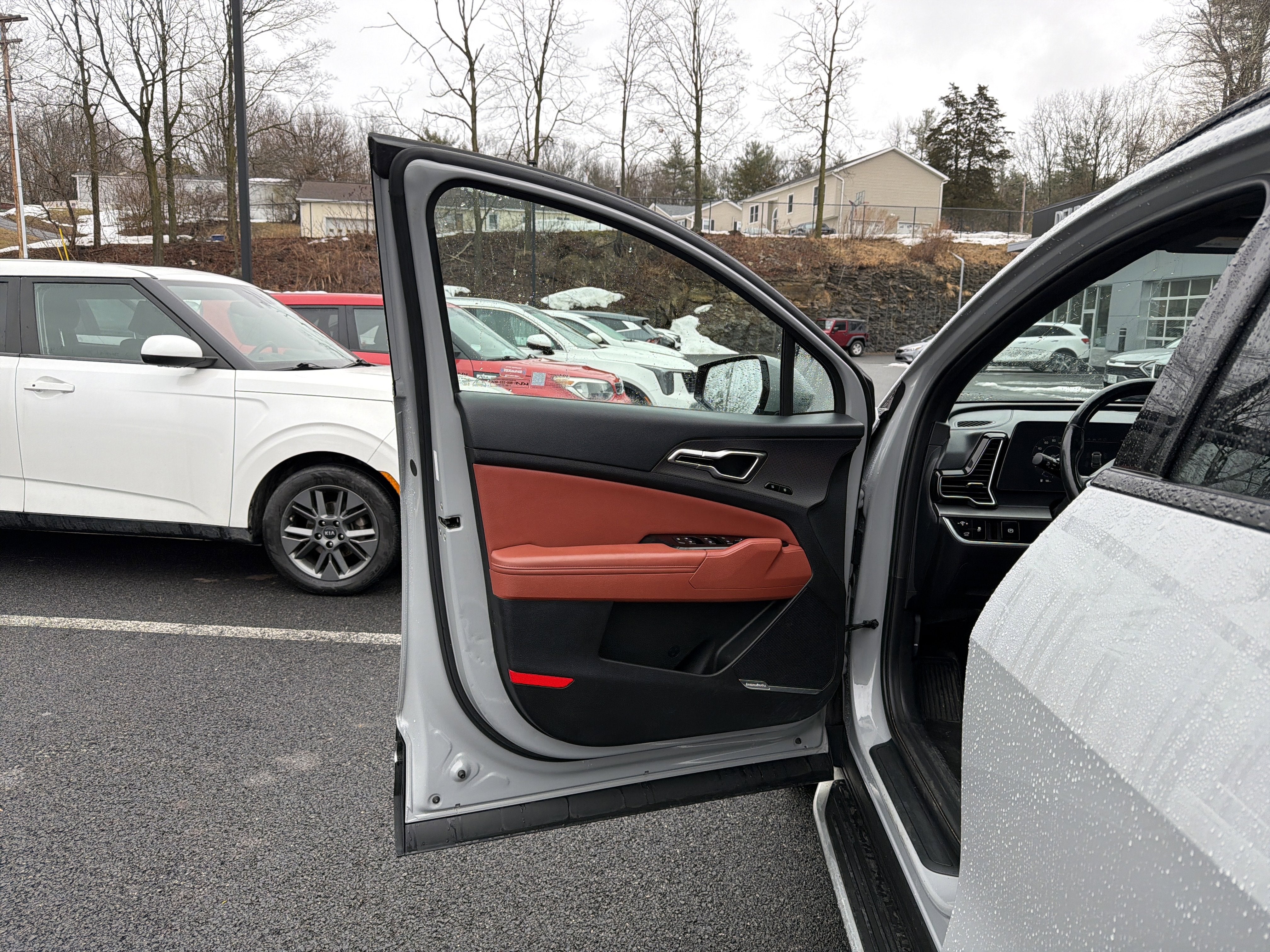 Romeo Kia proudly presents this 2023 Kia Sportage with Carmine Red Interior Color Package, 4-Wheel Disc Brakes, 8 Speakers, ABS brakes, Air Conditioning, Alloy wheels, AM/FM radio: SiriusXM, Apple CarPlay & Android Auto, Auto High-beam Headlights, Auto-dimming Rear-View mirror, Automatic temperature control, Axle Ratio: 3.648, Brake assist, Bumpers: body-color, Cargo Mat, Cargo Tray, Carpeted Floor Mats, Compass, Cross Bars, Delay-off headlights, Driver door bin, Driver vanity mirror, Dual front impact airbags, Dual front side impact airbags, Electronic Stability Control, Emergency communication system, Four wheel independent suspension, Front anti-roll bar, Front Bucket Seats, Front Center Armrest, Front dual zone A/C, Front fog lights, Front reading lights, Fully automatic headlights, Garage door transmitter: HomeLink, harman/kardon® Speakers, Heated & Ventilated Front Bucket Seats, Heated door mirrors, Heated front seats, Heated steering wheel, Illuminated entry, Leather Shift Knob, Leather steering wheel, Low tire pressure warning, Memory seat, Navigation System, Occupant sensing airbag, Outside temperature display, Overhead airbag, Overhead console, Panic alarm, Passenger door bin, Passenger vanity mirror, Power door mirrors, Power driver seat, Power Liftgate, Power moonroof, Power passenger seat, Power steering, Power windows, Premium Leatherette Seat Trim, Radio: AM/FM/HD Audio System, Rain sensing wipers, Rear anti-roll bar, Rear reading lights, Rear seat center armrest, Rear window defroster, Rear window wiper, Remote keyless entry, Security system, Side Steps, Speed control, Speed-sensing steering, Split folding rear seat, Spoiler, Steering wheel mounted audio controls, Tachometer, Telescoping steering wheel, Tilt steering wheel, Traction control, Trip computer, Turn signal indicator mirrors, Variably intermittent wipers, Ventilated front seats, Wheel Locks, and Wheels: 19 Gloss Black Alloy.