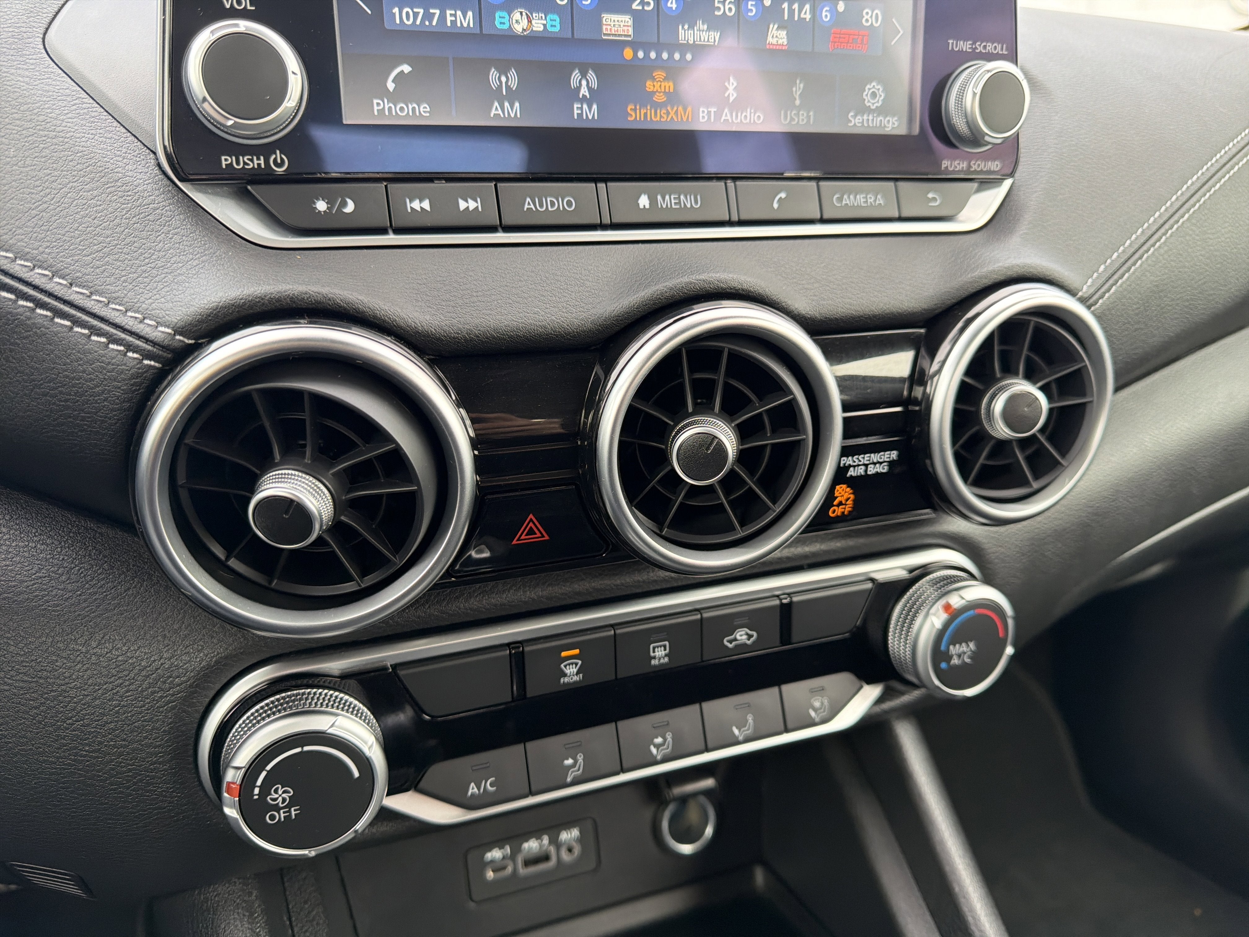 - Radio: AM/FM w/RDS/MP3/Aux-In -inc: 6 speakers plus 2 tweeters in A-pillar, 8" color display w/multi-touch control, streaming audio via Bluetooth®, Bluetooth® hands-free phone system, hands-free text messaging assistant, Siri eyes free, Google Assistant voice recognition w/Apple CarPlay and Android Auto, NissanConnect, (1) front USB connection port (type A), (1) additional front USB (type C) and (1) charge-only USB (type A) center console and SiriusXM radio w/advanced audio features