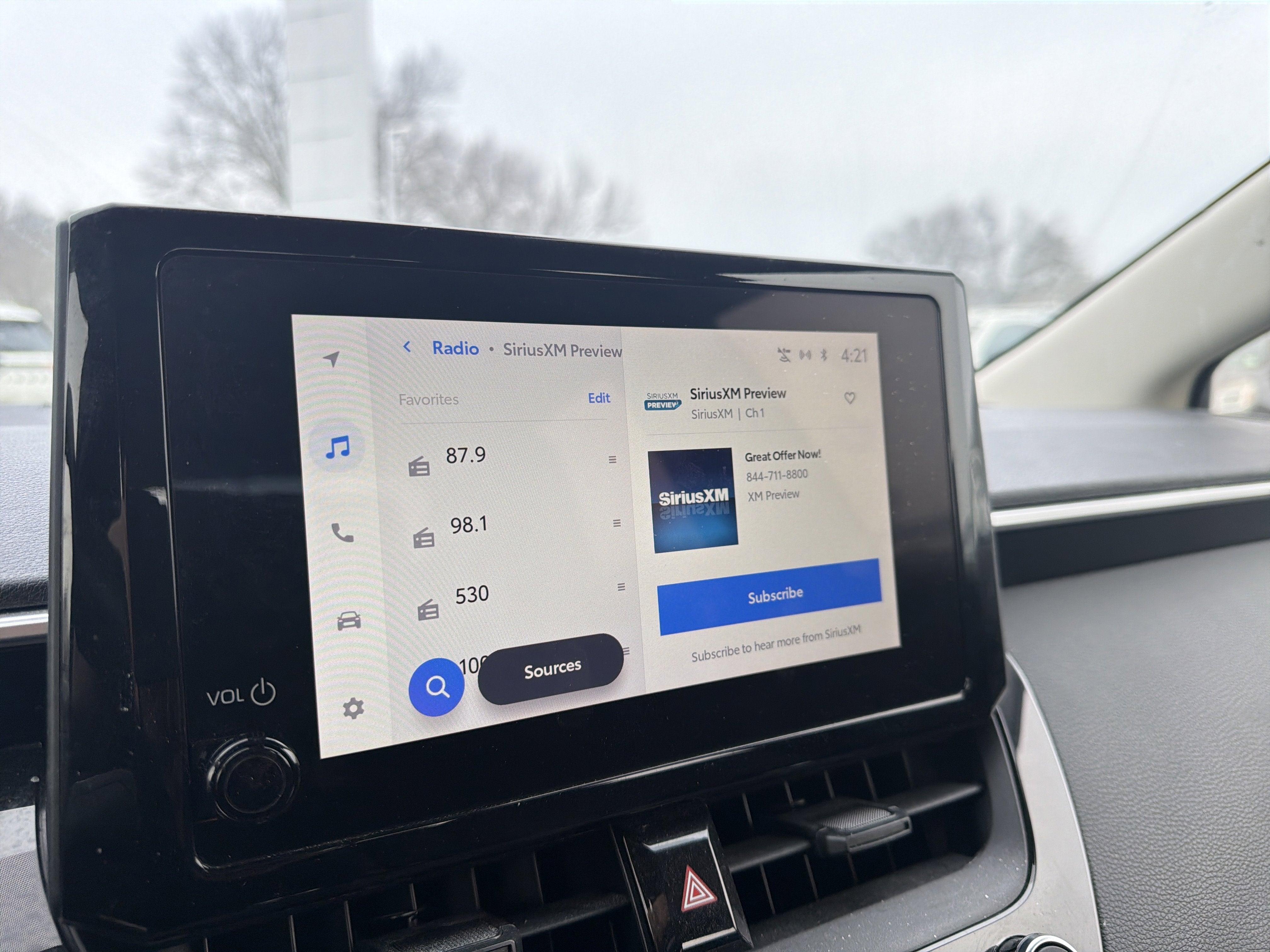 - Radio: 8" Toyota Audio Multimedia -inc: 6 speakers, wireless Apple CarPlay and Android Auto compatibility and SiriusXM w/3-month Platinum Plan trial subscription, See toyota.com/audio-multimedia for details