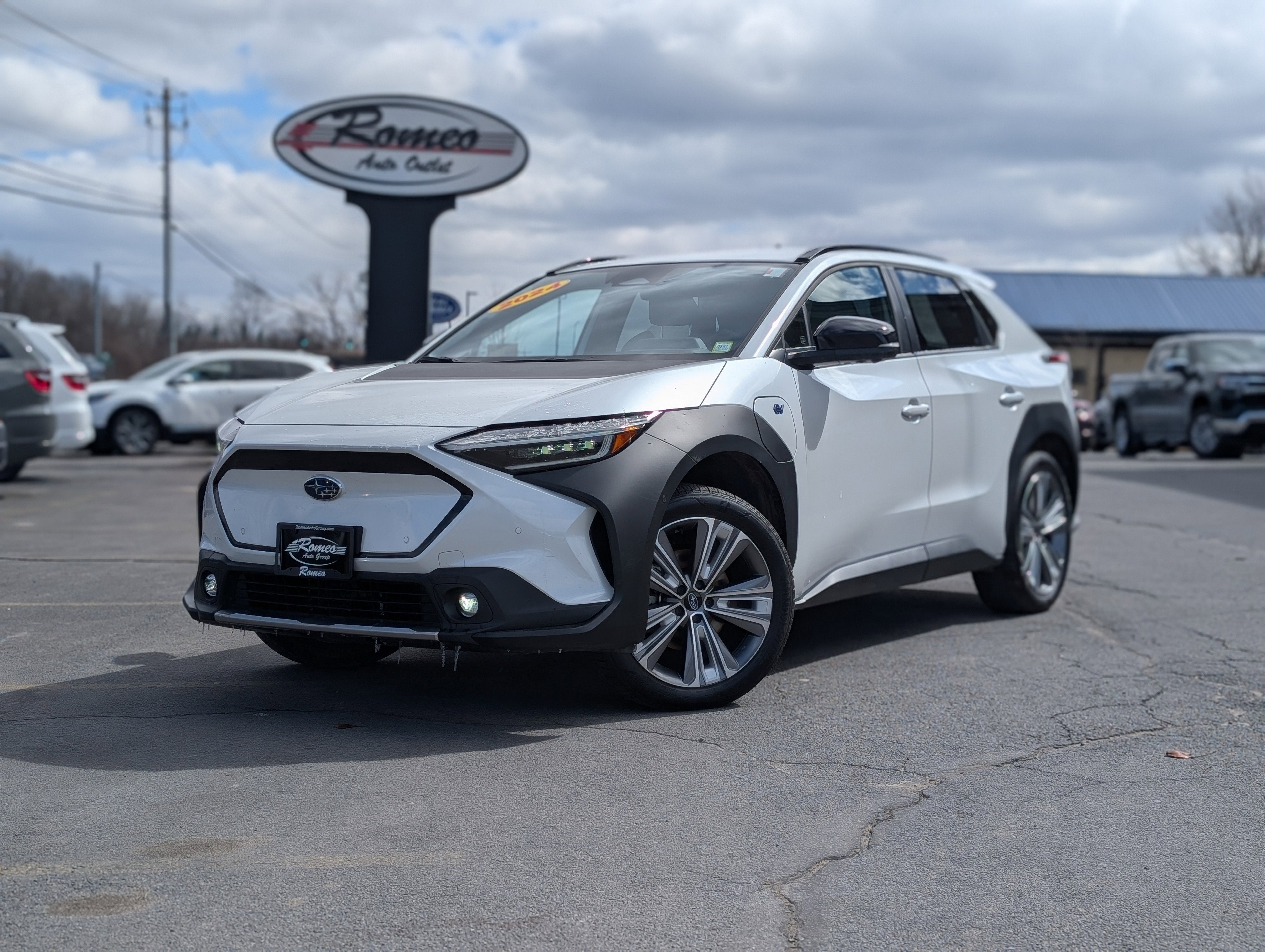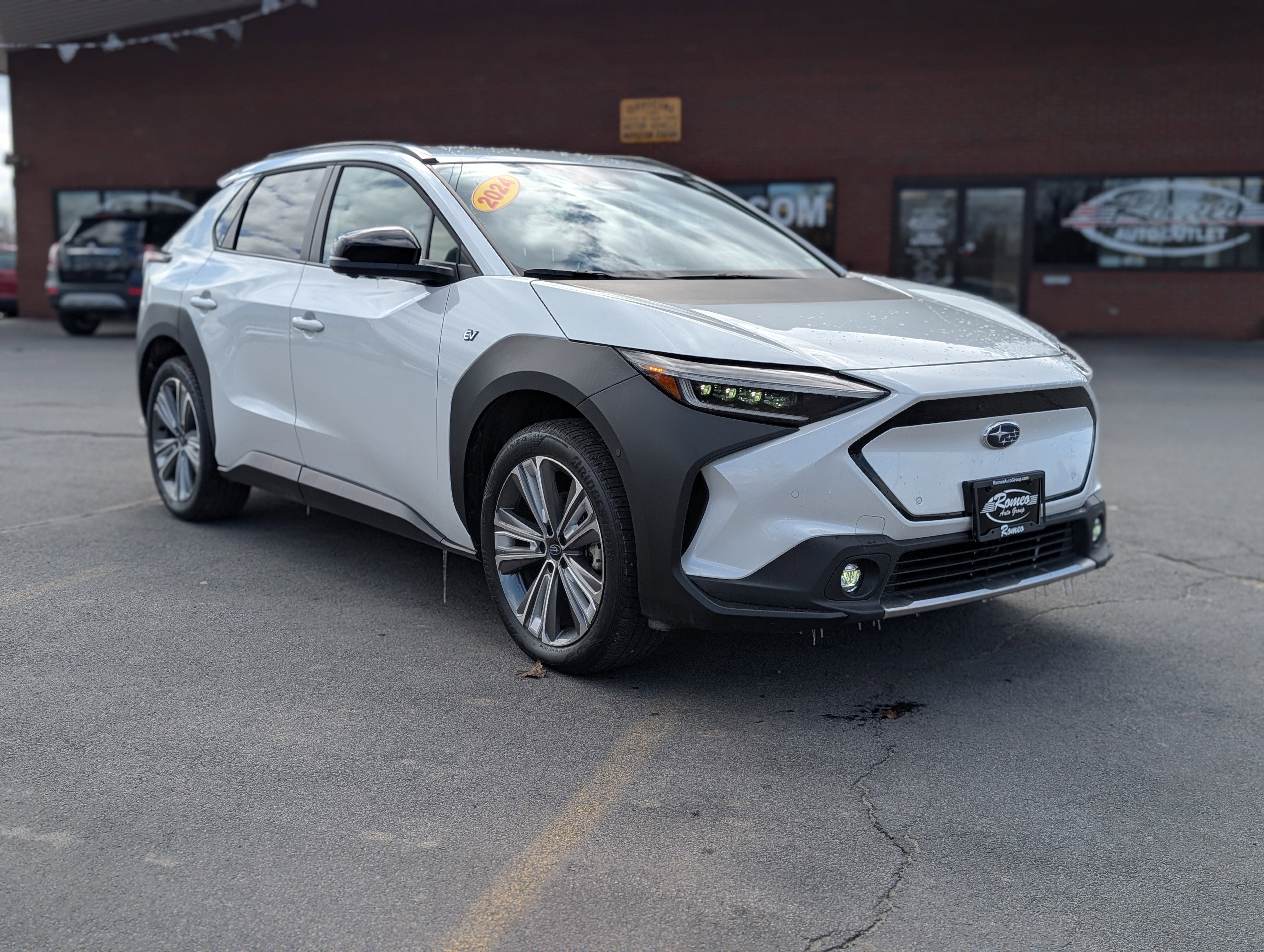 Romeo Auto Outlet is proud to present this 2024 Subaru Solterra with Standard Model, 11 Speakers, 13.8 Axle Ratio, 4-Wheel Disc Brakes, ABS brakes, Air Conditioning, All-Weather Floor Liners, Alloy wheels, AM/FM radio: SiriusXM, Auto High-beam Headlights, Auto-dimming Rear-View mirror, Automatic temperature control, Brake assist, Bumpers: body-color, Driver door bin, Driver vanity mirror, Dual front impact airbags, Dual front side impact airbags, Electronic Stability Control, Emergency communication system: Subaru Solterra Connect - Safety Connect (1 year trial included), Exterior Parking Camera Rear, Four wheel independent suspension, Front anti-roll bar, Front Bucket Seats, Front Center Armrest, Front dual zone A/C, Front fog lights, Front reading lights, Fully automatic headlights, Garage door transmitter: HomeLink, harman/kardon® Speakers, Heated door mirrors, Heated Front Bucket Seats, Heated front seats, Heated rear seats, Heated steering wheel, Illuminated entry, Knee airbag, Leather steering wheel, Low tire pressure warning, Memory seat, Navigation system: Cloud Navigation System (Subscription required), Occupant sensing airbag, Outside temperature display, Overhead airbag, Overhead console, Panic alarm, Passenger door bin, Passenger vanity mirror, Power door mirrors, Power driver seat, Power Liftgate, Power passenger seat, Power steering, Power windows, Radio data system, Radio: Subaru 12.3 Multimedia System, Rain sensing wipers, Rear anti-roll bar, Rear reading lights, Rear seat center armrest, Rear window defroster, Remote keyless entry, Security system, Speed control, Speed-sensing steering, Split folding rear seat, Spoiler, StarTex Upholstery, Steering wheel mounted audio controls, Telescoping steering wheel, Tilt steering wheel, Traction control, Trip computer, Turn signal indicator mirrors, Variably intermittent wipers, and Wheels: 20 x 7.5 J Aluminum-Alloy Gray Finish.