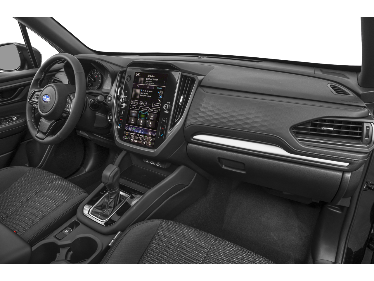 - Radio: Subaru 11.6" Multimedia Plus System -inc: valet mode, integrated center information display, AM/FM stereo HD Radio, multi-touch gesture high resolution display screen, voice activated controls, Bluetooth audio streaming and hands-free phone connectivity w/SMS text messaging connectivity (refer to subaru.com for cell phone compatibility), iPod control capability, SiriusXM w/360L (4 months free trial/subscription required after), SiriusXM Travel Link (3 years free trial/subscription required after), smartphone integration for Android Auto and Apple CarPlay w/full screen view and wireless connection, USB and Over The Air (OTA) audio system update, steering wheel control switches for audio and Bluetooth, 6 speakers, 3.5mm auxiliary input jack and roof mounted audio and satellite antenna